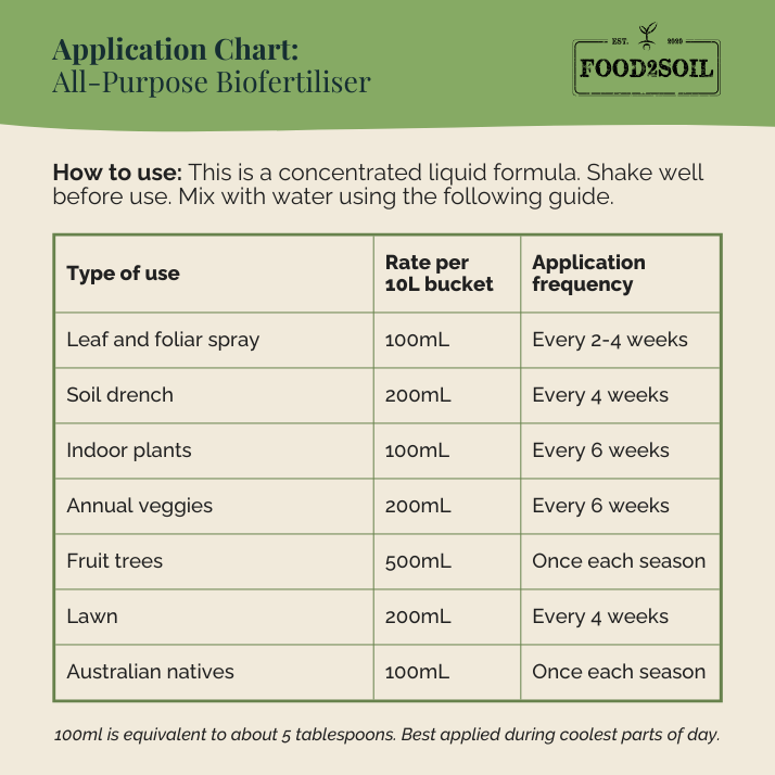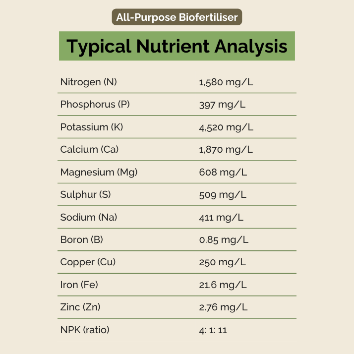 Compatibility: Can be alternated with All-Purpose Biofertiliser + Seaweed for extra trace nutrients.