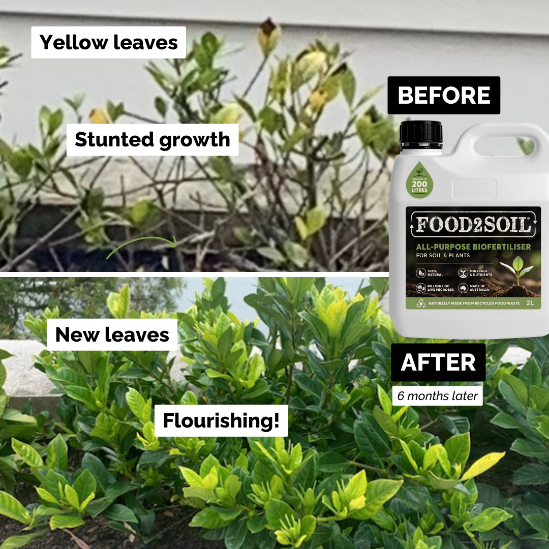 A: Unlike synthetic fertilisers, this biofertiliser delivers live microbes that improve nutrient cycling, root development and soil structure — feeding both plants and the soil ecosystem. For added nutrients, try alternating with All-Purpose Biofertiliser + Seaweed.