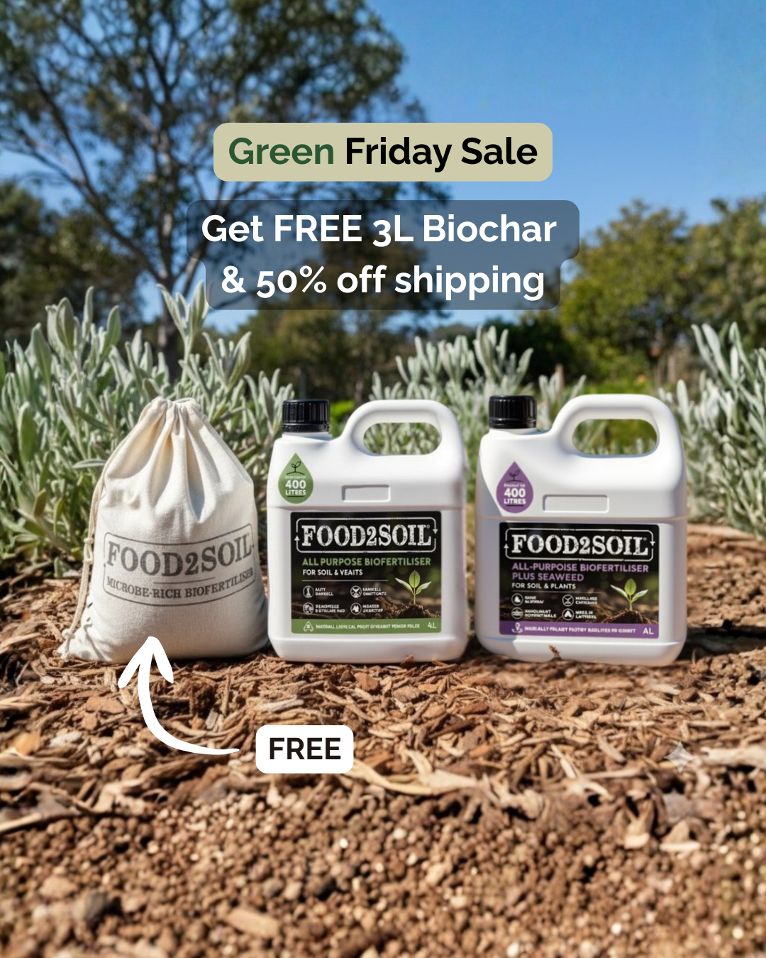 Buy both 4L Biofertilisers and get a 3L Biochar Soil Improver FREE — plus 50% off shipping Australia-wide!
